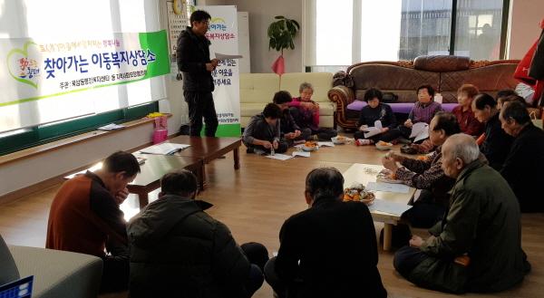 지난 16일 나안경로당을 찾아 어르신들의 눈높이에 맞춰 이해하기 쉽게 복지사업을 설명하고, 자원봉사센터 봉사자와 연계해 건강을 위한 발마사지를 제공했다.