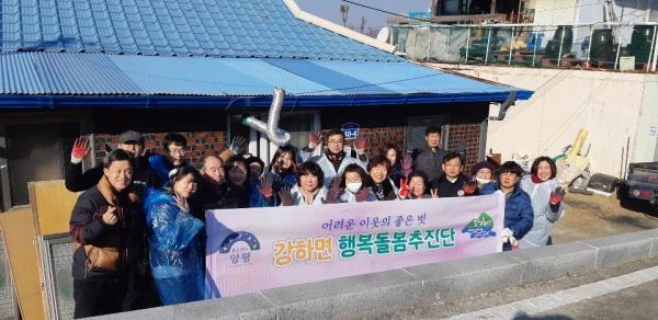 양평군 강하면 행복돌봄추진단 15명이 지난 17일 강하면 운심리에서 홀로 살아가는 독거노인에게 사랑의 연탄 250장을 전달했다.