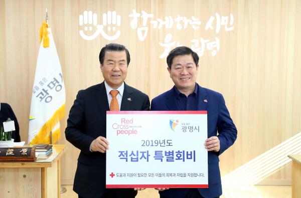 광명시는 각종 재난으로 인한 이재민 구호활동과 아동·청소년, 저소득 노인 등 어려운 상황에 처한 이웃을 돕기 위해 매년 특별회비를 납부하고 있으며 적십자회비 모금활동에도 적극 동참하고 있다.