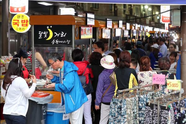 한편, 달빛거리 송현야시장은 저럼한 가격의 세계 각국의 다양한 음식 및 시장 아케이드 천장에서 펼쳐지는 다양한 그래픽 화면과 문자, 사진전송, 포토존 등 스카이 미디어 아트로 시장을 찾는 관광객들에게 많은 인기를 끌고 있다.