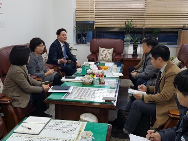 경기도의회 보건복지위원회 최종현 부위원장은 21일, 보건복지위원회 의원실에서 경기도 장애인복지과, 건설본부, 경기도시공사 관계자 등과 함께 간담회를 개최해 경기도 신청사 건립과 관련 중증장애인 생산품 우선구매율을 상향 조정하는 방안에 대해 논의하는 시간을 가졌다.