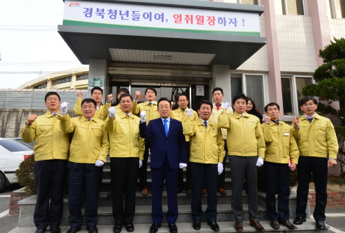 경상북도는 22일 舊소방본부에서 청년일자리 전담부서를 확대.출범하고, 경북청년「일.취.월.장」프로젝트 출발을 상징적으로 선포하기 위한 청년취업과(T/F) 현판 및 제막식을 가졌다. 이날 현판식에는 김관용 경상북도지사, 행정부지사, 경제부지사 등이 참석한 가운데 청년취업과(T/F) 현판 및 제막식, 신설 청년취업과 사무실을 방문하는 순으로 진행되었으며, 취업을 향한 청년들의 꿈을 이룰 수 있도록 경북도의 청년취업을 위한 의지를 모으는 계기가 되었다. 한편, 청년취업과(T/F)는 청년일자리 정책 확대를 위해 기존 일자리창출단 1담당 3명에서 3담당 11명으로 확대·개편하여 종합적 기획부터 시책 발굴에 이르기까지 청년 일자리를 하나라도 더 만드는데 총력을 기울일 계획이다. 경북도는 신도청시대의 새로운 역사를 여는 2016년도에 청년일자리 정책 슬로건을 ‘일‧취‧월‧장’(일찍 취직해서 월급받아 장가‧시집 가자)으로 정하고 3포(연애,결혼,출산포기)세대 청년들에게 희망을 줄 수 있는 좋은 정책을 발굴하는 등 청년취업에 도정의 모든 역량을 집중하기로 했다. 이와 관련하여, 청년일자리 창출에 중점을 두고 갈수록 어려워 지고 있는 지역청년 구직난 완화를 위해 청년CEO 육성, 중소기업 인턴사원제 확대, 청년해외취업 활성화, 청년고용 우수 중소기업 인센티브 제공, 히든챔피언 기업-청년 희망이음 프로젝트, 일·학습병행제(도제식학교, 고졸취업자 학위취득) 지원 등 청년일자리 시책을 펼쳐 나갈 계획이다. 김관용 경상북도지사는 “청년취업과 출범을 계기로 청년 실업 해결을 위해 신도청 시대 청년 취업을 첫 번째 과제로 챙겨 취직 걱정 없는 경북 세상을 만들어 갈 것”이라는 각오를 내비쳤다