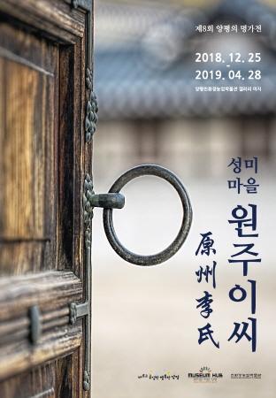 군은 제8회 양평의 명가전, 성미마을 원주이씨展의 개막식을 오는 25일 오후 3시 용문면 양평친환경농업박물관에서 개최한다고 밝혔다. 전시는 지난해 12월 25일부터 진행되고 있으며, 올해 4월 28일까지 약 5개월 동안 지속된다. 양평의 명가전은 양평군을 터전삼아 지역 사회에 큰 공헌을 한 지역의 명문가의 전래되는 유물과 자료를 통해 지역의 역사와 인물을 알리기 위해 기획되고 있는 연속사업이다.