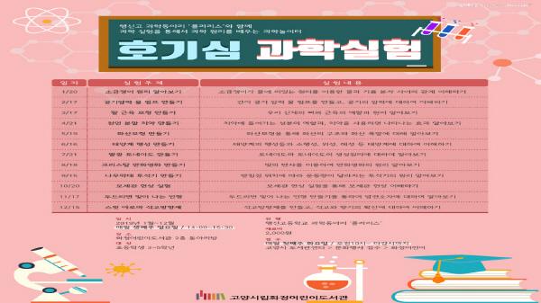 고양시 화정어린이도서관은 초등학생을 대상으로 월1회 ‘호기심 과학실험’ 강좌를 운영한다.