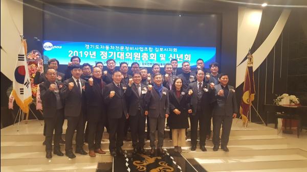 경기도자동차전문정비사업조합 김포시지회는 지난 19일, 김포컨벤션웨딩홀에서 회원 등 250여명이 참석한 가운데 2019년 정기대의원총회 및 신년회를 갖고 향후 카포스의 운영 방향에 대한 결의를 다졌다.