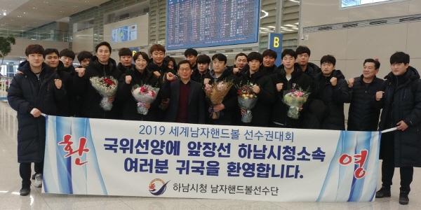 하남시는 지난 22일 독일-덴마크에서 개최한 2019년 세계남자핸드볼선수권대회에 국가대표로 출전한 하남시청 핸드볼팀 소속선수 6명에 대해 인천국제공항에서 환영행사를 가졌다고 밝혔다.