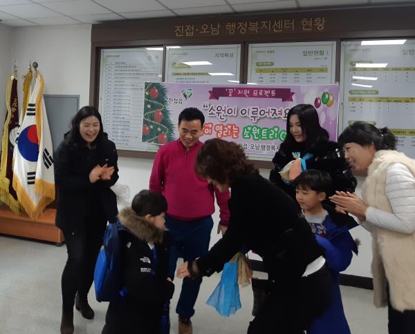 그중 초등학교 입학을 앞둔 아동은 책가방을 선물로 받고 “어서 책가방을 메고 학교에 가고 싶다.”고 말하며 기대감을 드러냈다. 또한 장난감을 받고 싶다고 소원을 적은 아동은 로봇을 선물로 받고 “빨리 친구들과 함께 놀고 싶다.”고 말했다.