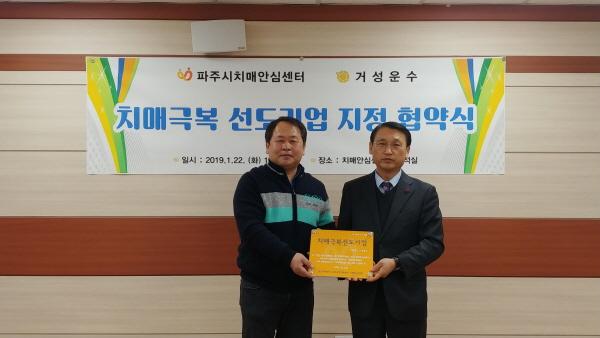 파주시치매안심센터는 택시운수회사인 거성운수를 ‘치매극복 선도기업’으로 지정하고 지난 22일 협약식을 진행했다.