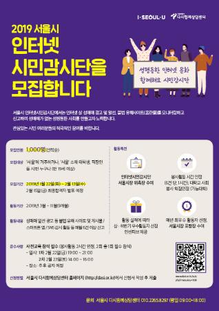 한편, 이와 관련해 서울시는 올해 ‘인터넷 시민 감시단’ 9기로 활동할 시민 1천명을 23일부터 2월 13일까지 선착순 모집한다.