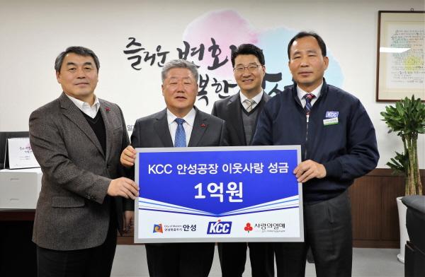 ㈜KCC는 '함께 만드는 더 좋은 세상'이라는 사회공헌 철학을 바탕으로 대내외적으로 어려운 경제 상황을 극복하고 지역사회와 함께 동반성장에 이바지하는 나눔 경영을 실천하고 있다. 안성공장에서 2013년 장학금으로 10억원을 기탁한바 있으며, 2017년에는 600만원상당의 성금과 쌀을 2018년에는 500만원상당의 쌀을 기탁했다.