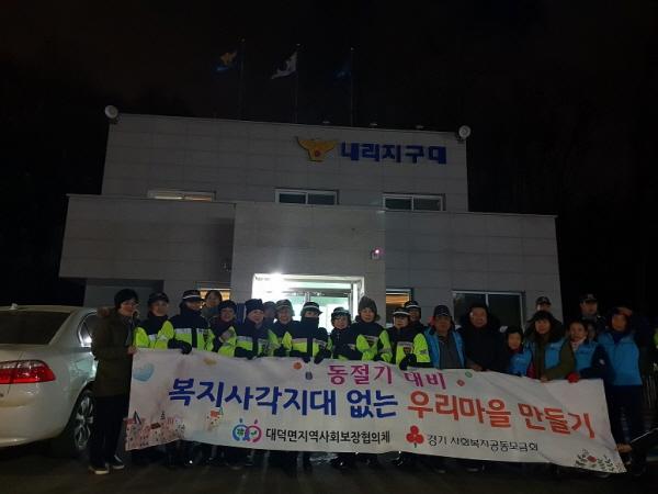 대덕면 지역사회보장협의체는 지난 21일 저녁 대덕면어머니자율방범대와 대덕면 바르게살기위원회와 합동으로 대덕면 내리 일원에서 “동절기 대비 복지사각지대 발굴 우리마을 만들기”라는 슬로건 아래 캠페인을 전개했다.