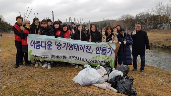 동춘3동 지역사회보장협의체는 최근 승기천 일원에서 청소년들과 함께하는 아름다운 승기생태하천 만들기 환경정화 활동을 실시했다.