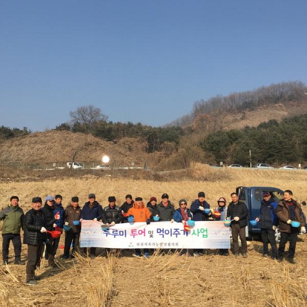 연천지속가능발전협의회는 23일 천연기념물 두루미를 보호를 위한 먹이주기를 중면 횡산리 소재 먹이터 망제여울에서 실시했다.