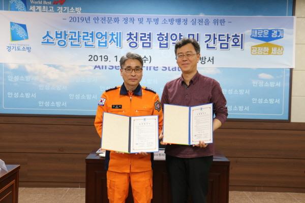 이날 청렴 협약식에서는 청렴한 공직사회 구현과 안전한 소방시설 구축여건 조성을 위해 민·관 협력체계를 강화해 상호간 투명하고 청렴한 업무를 성실히 수행할 것을 다짐했다. 또한 주요 화재사례 전파, 최근 소방관계 법령 개정사항 안내, 소방시설 부실공사 방지와 업체의 성실시공을 위한 애로·건의사항 청취 및 당부사항 전달 등 소통의 시간을 가졌다.