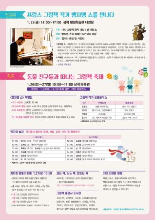 26일에는 벵자맹 쇼 특별전으로 책 속 장면을 실제 무대로 조성해 체험하기, 작업의 전 과정을 전시한 아트 프린팅전, 한국과 프랑스 그림책 속 동물 캐릭터 특징을 비교한 한-프 동물 그림책 전시 등이 열린다.