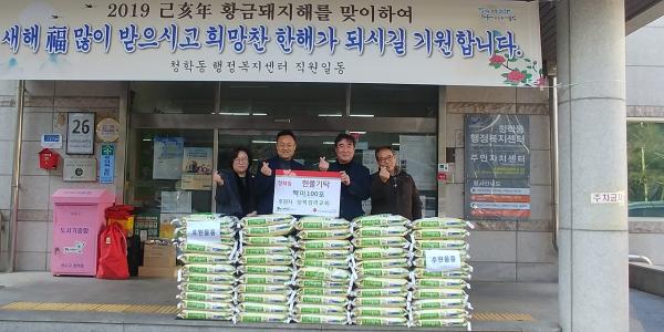 청학감리교회는 최근 설을 맞아 불우이웃을 위한 사랑의 쌀 100포를 청학동 지역사회보장협의체에 기탁했다.