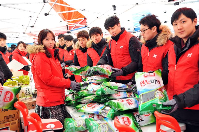 이날 행사는 KT그룹 신입사원 봉사자 130여명과 BC카드 빨간밥차에서 차상위계층, 독거어르신, 한부모, 장애인 등 은평구에 거주하고 있는 저소득 가정 400가구에게 고추장, 된장 등 5개 품목이 담긴 식품꾸러미를 쇼핑캐리어에 가득담아 제공하였다. 추운 날씨로 인해 거동이 불편하신 대상자들을 위해 봉사자들이 직접 찾아가 식품꾸러미와 빨간밥차 갈비탕을 전달하기도 했다.