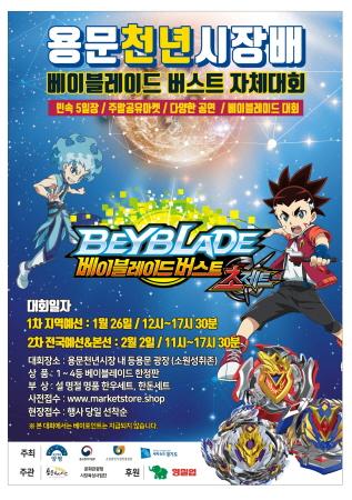경기도 양평군 용문면에 위치한 용문천년시장은 국내 유명 완구, 애니메이션 회사인 영실업의 후원으로 오는 2월 2일 시장 등용문광장 소원성취존에서 ‘설맞이 용문천년시장배 베이블레이드 버스트 자체대회’를 진행한다.