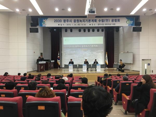 광주시는 지난 24일 시청 10층 대회의실에서 공무원, 시민, 관련분야 전문가 등 100여명이 참석한 가운데 ‘2030 광주시 공원녹지기본계획’ 수립용역 공청회를 개최했다.