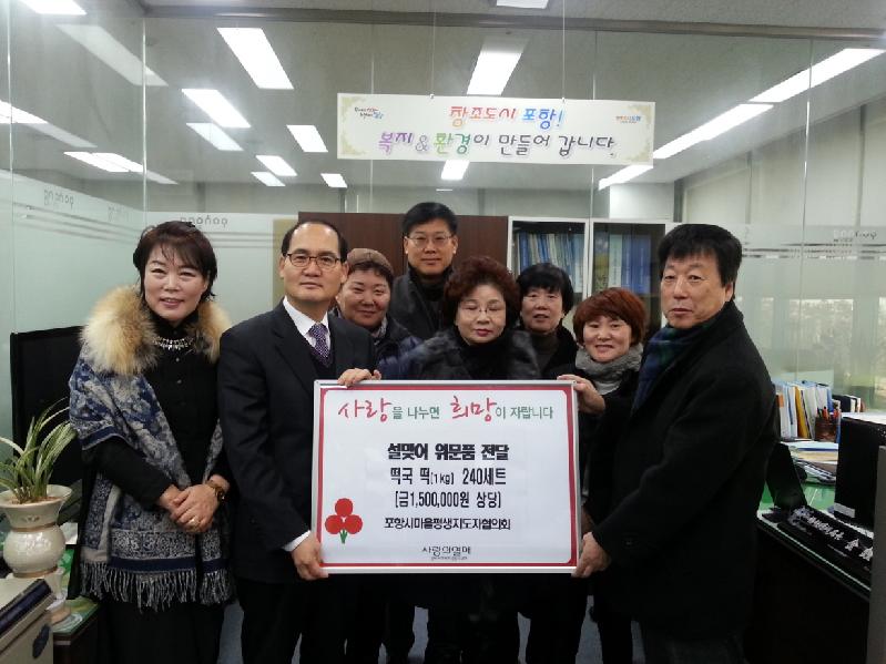 포항시 마을평생지도자협의회(회장 김용재)는 25일 포항시를 방문해 ‘설맞이 이웃돕기 떡국 떡’ 240세트(240kg, 150만원 상당)를 주민복지과에 전달했다. 이번 떡국 떡 전달은 협의회 회원들이 그동안 십시일반 모은 온정으로 가래떡을 직접 뽑아 1kg 단위로 포장을 한 것으로, 설을 맞이해 소외된 이웃에게 조금이나마 위안을 주고자 준비됐다.