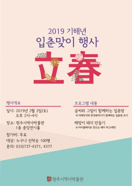 원주시 역사박물관은 24절기 중 첫 번째 절기인 입춘을 맞아 오는 2월 2일 오후 2시부터 4시까지 “입춘맞이 행사”를 개최한다.