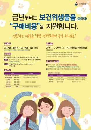 올해부터는 지원방식이 바우처로 변경돼 개인 기호에 맞는 위생용품을 국민행복카드를 이용해 가맹점에서 직접 구매할 수 있게 됐다.