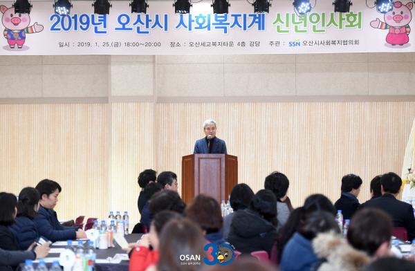 곽상욱 오산시장을 비롯한 장인수 오산시의회 의장, 안민석 국회의원, 시의원, 사회복지 시설·단체장 등 100여명이 모인 가운데 새해 인사와 덕담을 나누며, 신년 축하 떡 케이크 컷팅으로 화기애애한 분위기로 황금 돼지해 기해년을 맞아 각 가정에 건강과 행복을 기원했다.
