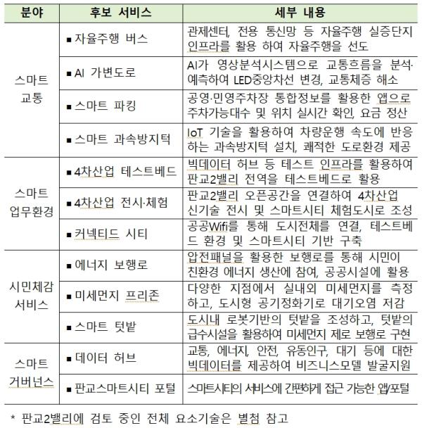 이 날 회의는 판교 2밸리 사업 시행자가 검토·설계 중인 30여개 스마트 서비스에 대해 관계 부처와 민간 전문가가 함께 논의하는 자리이다.