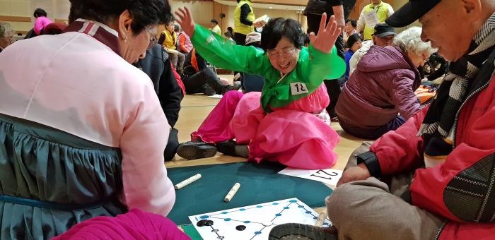 명절 전통놀이 윷놀이 대회로 총 48개 팀이 예선전을 거쳐 3팀이 결선에서 경합을 벌여 우승팀을 가려 푸짐한 상품을 전달하였다. 그 외에도 꿀떡, 닭강정, 수정과 등을 함께 나눠먹고 퇴관시에는 모든 어르신들에게 사탕이 든 복주머니를 선물로 드려 즐겁고 풍요로운 설날 축제의 한마당이 되었다.