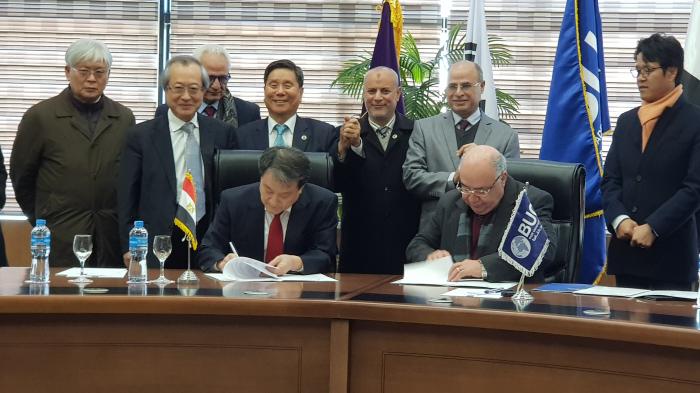 조동성 인천대 총장은 지난 21일(현지시간) 이집트 카이로에 있는 BUC대학을 방문, 하산 엘칼라 이사장과 만나 국제얼굴대학원 설립에 관한 논의를 마치고 BUC로부터 설립 및 운영에 필요한 투자금 2000만 달러를 유치하는 투자의향서에 서명했다.