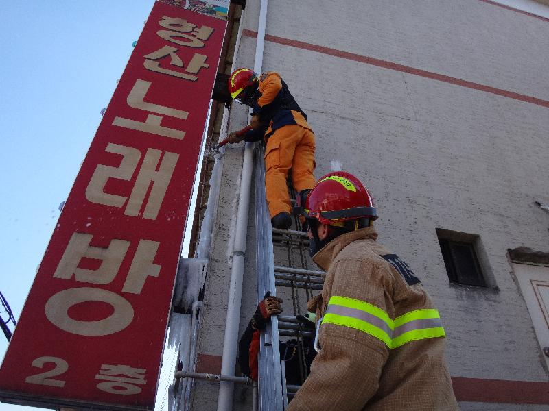포항남부소방서(서장 김학태)가 시민 안전을 위해 고드름 제거에 나섰다.119구조구급센터에서는 26일 13시10경 포항시 남구 해도동 형산로터리 인근 한 건물 외벽에 고드름을 안전하게 제거한 것을 비롯 지역내 위험하게 매달려 있는 고드름을 찾아다니며 제거작업을 벌였다.김정환 119구조구급센터장은 "고드름은 그대로 둘 경우 날이 따뜻해졌을 때 보행자를 덮쳐 인명피해로 이어질 위험이 있으므로 사고가 발생되지 않도록 보행자와 건물주의 각별한 주의가 필요하다"고 당부했다