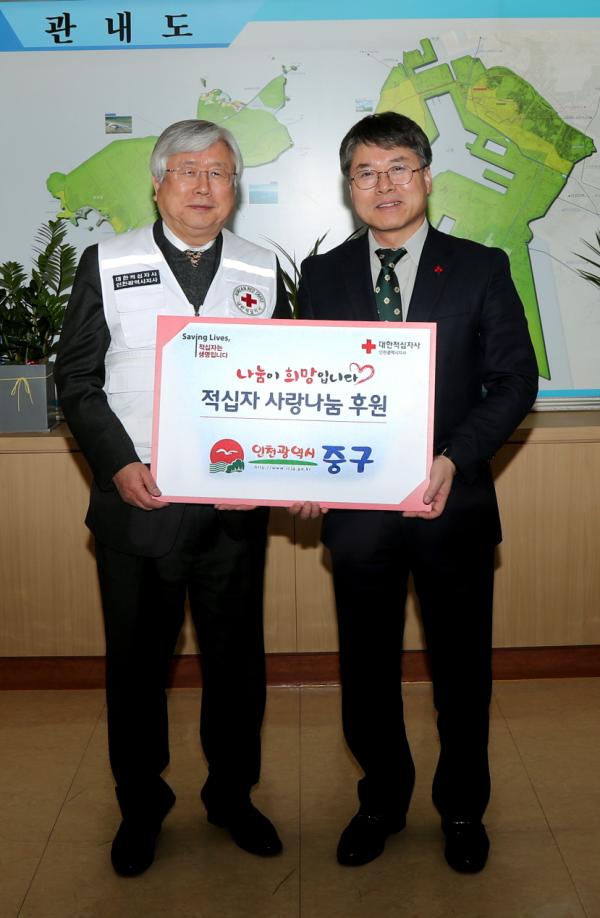 인천 중구가 적십자 특별회비 2백만 원을 전달하는 등 이웃사랑 실천에 앞장서고 있다.