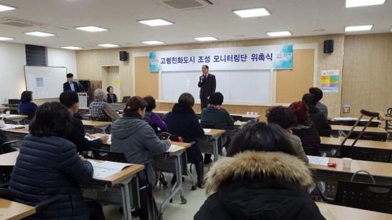 이날 위촉식과 함께 모니터링 활동교육이 진행됐다. 교육은 경기복지재단의 김춘남 연구위원의 강의로 고령친화도시 개념의 탄생 배경과 전개 과정, 시민모니터링단의 역할과 모범사례 등으로 이뤄졌다.