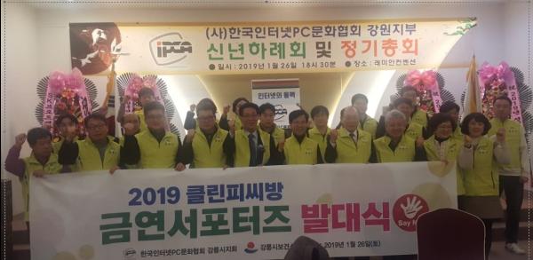 한국인터넷PC문화협회 강릉시연합회는 지난 26일 2019년 정기총회를 개최하고 강릉시와 함께 담배 연기 없는 깨끗한 PC방 문화정착을 위한 ‘2019년 클린PC방 금연서포터즈 발대식’을 가졌다.