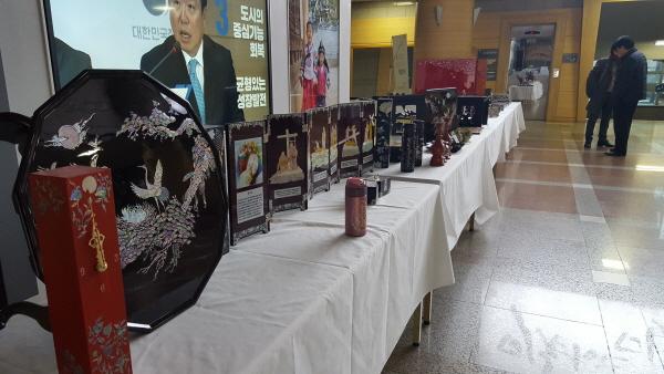 남양주시는 지난 28일 시청 본관 로비에서 ‘금곡 청출어람’ 나전칠기 작품 전시회를 개최했다.
