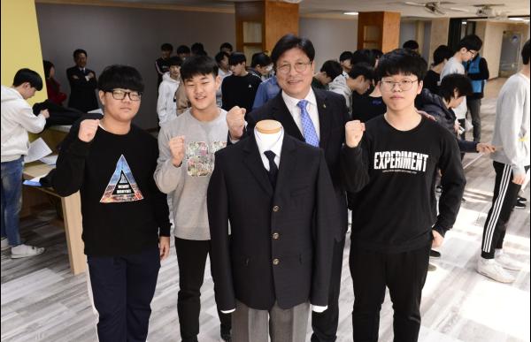 인천광역시교육청 도성훈 교육감은 30일, 부광고등학교를 방문해 고등학교 신입생들의 교복 치수를 측정하고, 교복과 관련된 여러 의견을 청취했다.