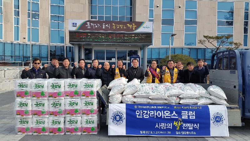 경주 안강라이온스클럽(회장 김돌표)은 27일, 복지사각지대에 놓인 이웃에게 조금이나마 사랑을 베풀고 싶다며 생필품(쌀 20kg 45포, 화장지 45개)을 읍사무소에 기증했다.안강라이온스클럽은 평소에도 지역사회의 어려운 이웃들에게 꾸준히 관심을 갖고 사회복지단체를 후원하는 등 지속적인 봉사활동을 해오고 있다.
