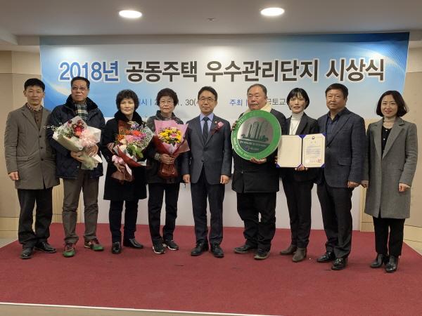 전국 공동주택에서 모범적 관리를 한 공동주택중 시·도지사가 선정해 추천한 단지를 대상으로 국토교통부 주택건설공급과 주관으로 실시한 "2018년 국토교통부 우수관리단지"에 대한 시상식이 한국감정원 서울사무소에서 열렸다.