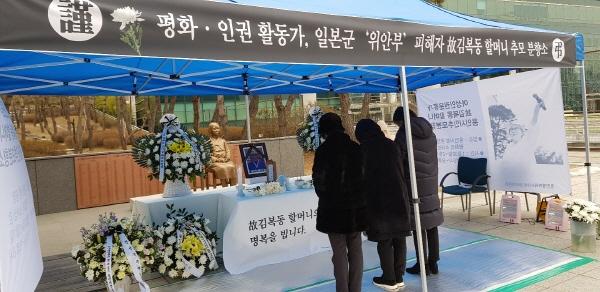 지난 2017년 시민성금을 모아 평화의 소녀상을 건립한 바 있는 시민관리위원회는 오는 2월2일까지 분향소를 운영할 예정이다.