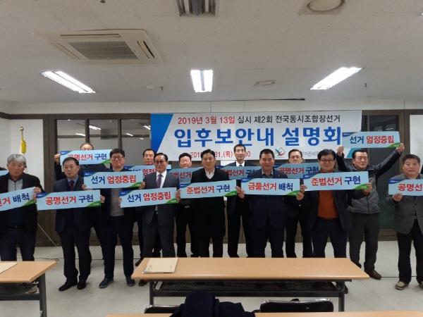 농협 양주시지부와 양주시 선거관리위원회는 31일 양주시 선관위 회의실에서 조합장 선거 입후보 예정자를 대상으로 설명회 및 공명선거 실천 결의대회를 가졌다.