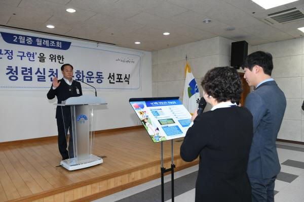 이번 선포식은 ‘소통하는 공직 문화, 변화하는 청렴 양평’을 구현하고자, 양평군 전 직원들의 서약과 선서를 통해 ‘어떠한 부정부패도 행하지 않고 용납하지도 않겠다.’라는 결의를 다지는 자리로 마련됐다.