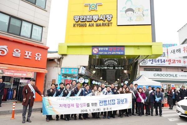광주시는 지난달 31일 경안시장에서 전통시장 활성화와 서민경제 안정을 위한 장보기 행사와 물가안정 캠페인을 실시했다.