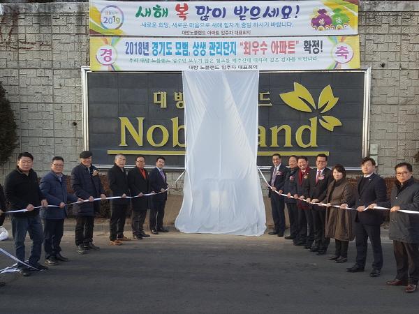 2001년 8월 입주한 대방노블랜드1차 아파트는 15개동, 1천80세대 규모며 입주자대표회의를 중심으로 단지 꽃밭 조성, 밥상공동체 운영, 낙엽 및 잡초를 활용한 퇴비 생산, 따복사랑방 운영 등 주민화합 활동으로 입주민의 단합된 노력이 우수한 평가를 받아 2018년 경기도 3천700여개 단지 중 1천 세대 이상 최우수 모범 상생관리단지로 선정된 바 있다.