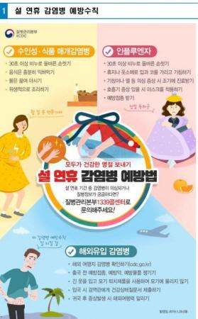 시에 따르면 국내에서는 명절에 친지 간 음식 공동 섭취 및 식품 관리 소홀, 사람 간 접촉 증가로 인한 수인성·식품 매개감염병, 인플루엔자 등에 유의해야한다.