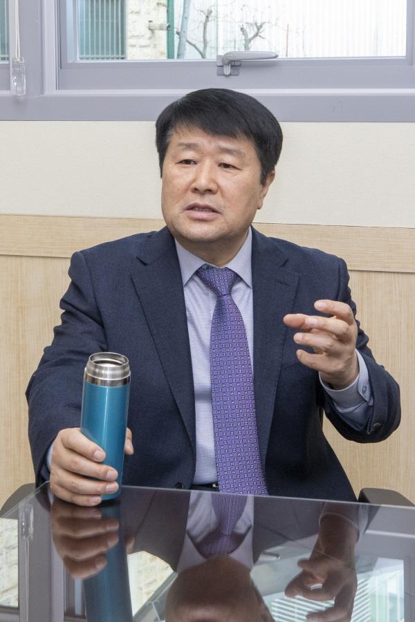 박형우 인천 계양구청장은 지난 1월 31일 계산3동 행정복지센터 준공식장에서 직원들과 티타임을 가지며 ‘플라스틱 프리 챌린지’ 캠페인에 참여했다.