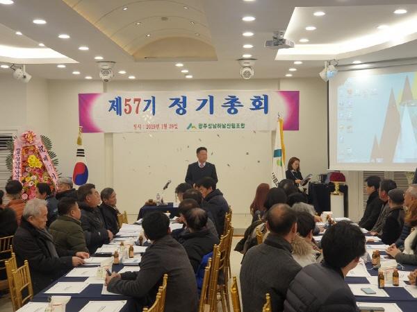 광주성남하남산림조합은 지난 1월 29일 조합 이사,감사,대의원과 산림조합중앙회 회장님의 영상메시지을 비롯한 내외 귀빈이 참석한 가운데 제57기 정기총회를 광주시 역동 소재 문화웨딩홀 3층에서 개최했다.