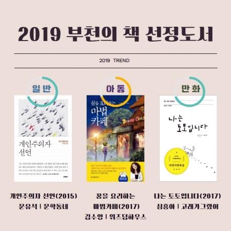 유네스코 문학창의도시 부천시가 시민과 함께 뽑은 ‘2019 부천의 책’을 선정했다. 올해 부천의 책으로는 일반분야 ‘개인주의자 선언’, 아동분야 ‘꿈을 요리하는 마법 카페’, 만화분야 ‘나는 토토입니다’가 선정됐다.