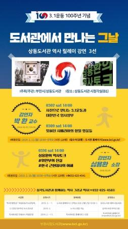 부천시 상동도서관에서는 3.1운동 및 임시정부수립 100주년을 맞이해 오는 3월 역사릴레이 강연 ‘역사의 그날-시민과 소통하다’를 마련했다.