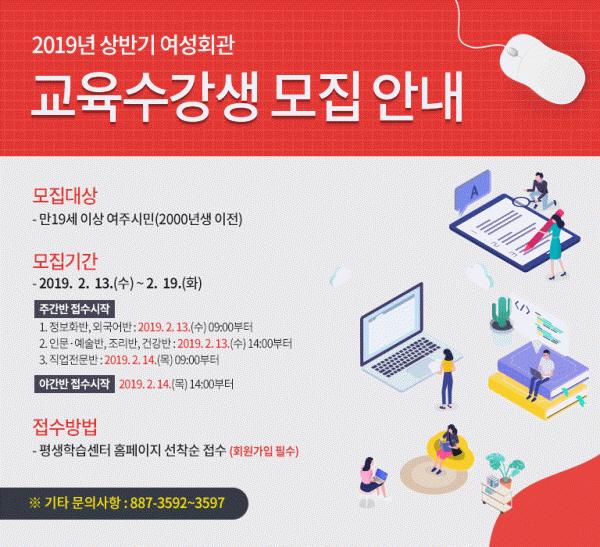여주시평생학습센터가 오는 13일부터 2019년 상반기 여성회관 교육 수강생을 모집한다.