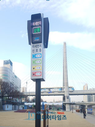 대구시설공단은 1월 30일(수), 신천둔치에 무선네트워크 시스템을 이용하여 실시간으로 대기질의 상태를 알려주는 미세먼지 신호등을 설치했다.